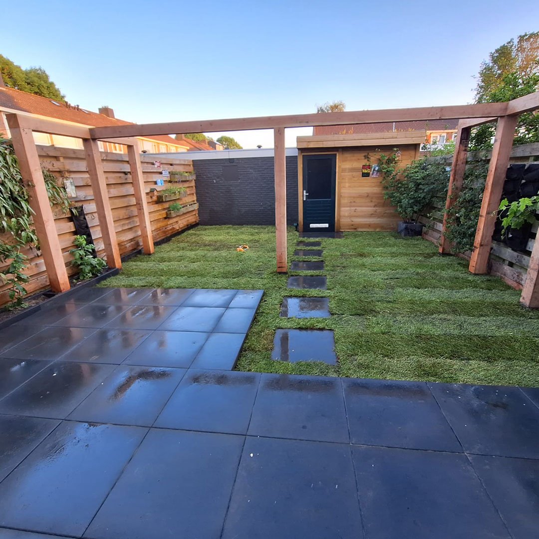 Of het nu gaat om een strak terras, sfeervolle verlichting, een mooie overkapping of groene borders – wij zorgen dat alles klopt. Je hoeft nergens naar om te kijken. Wij regelen alles: grondwerk, bestrating, beplanting en afwerking.